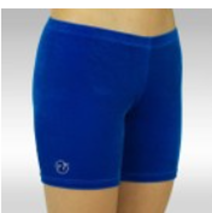 Fantastisch mouwloos turnpakje, gemaakt in blauw glad velours. Op de voorzijde zit een sprankelend patroon van glitter pailletten.